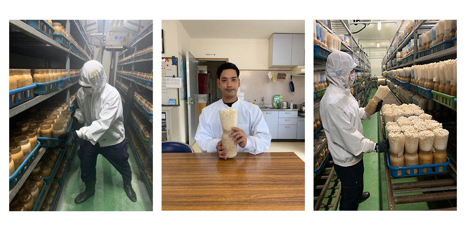 弊社の社員は全員未経験者で、色んな業種の方が集まっています。左官、セールス、飲食、介護、様々の業種を経験された方たちが今はえのき茸栽培に汗を流しています。