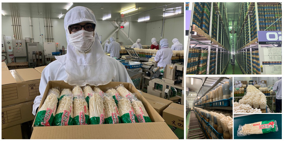 今では、今帰仁きのこ園は県内唯一のえのき茸生産工場で年間600トン程のえのき茸を生産し、グループ会社で国頭村に国頭きのこ園がありぶなしめじを年間300トン程生産してます。
